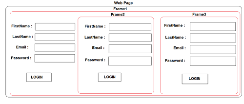 In this scenario, we will identify the first frame i.e iframe1 by using its properties like Id="Frame1" or name="Frame1". Once the frame1 is identified, we will switch into the frame1. Subsequently, we will identify each control with the properties like