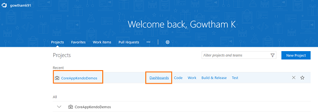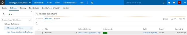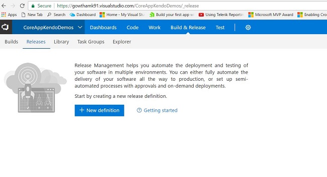 Go to CoreAppKendoDemos Project page. Select Release from build & release menu. The release page will open, as shown below.