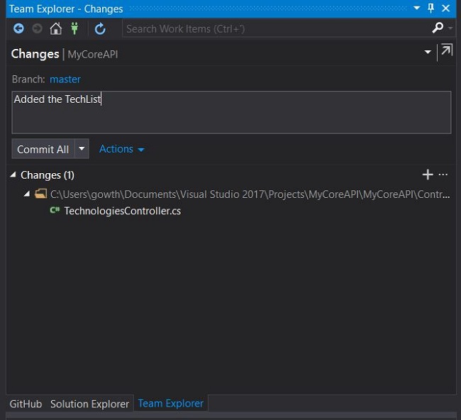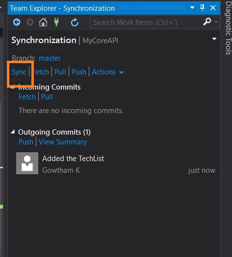Let's make some changes in the code and perform synchronization for GitHub from Visual Studio to check out our continous integration process.