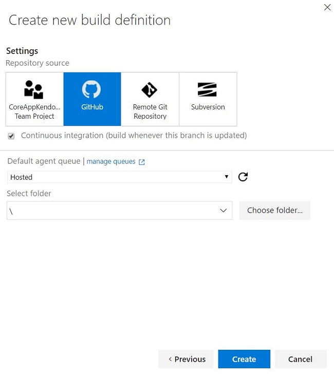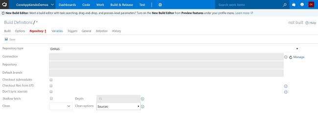I’m going to create a build definition for this repository from VSTS (Visual Studio Team Service).