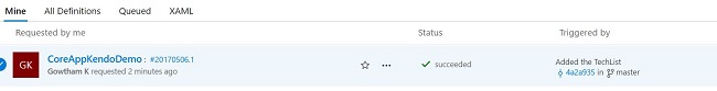CoreAppKendoDemos is the existing project in the Team Service with Git Version Control. I will use this repository to create a build defintion for ASP.NET CORE Application, which is located in our GitHub repository.