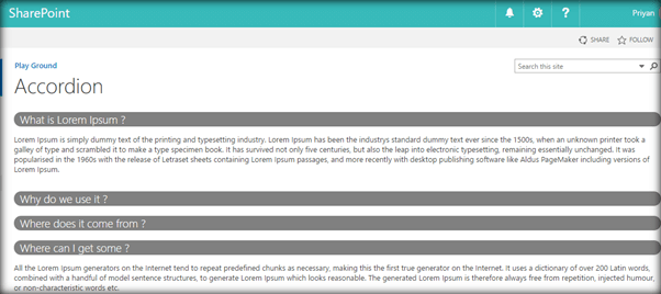 This implementation can also be used to create a Frequently Asked Question (FAQ) section. You can download the JS file used for the implementation from the top of the article.
