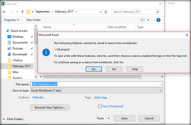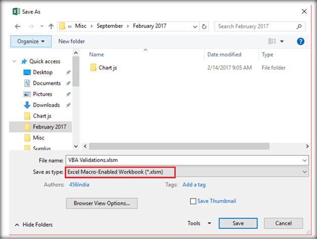 Since macros are involved in the Workbook, we will have to save them as macro enabled Workbook with the extension .xlsm.