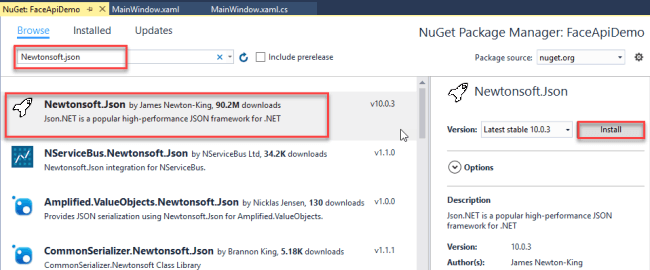 The JSON.NET is a popular Framework for JSON framework for .NET applications. We will use it because our Face API consists of a lot of JSON files to store the various details about the images.