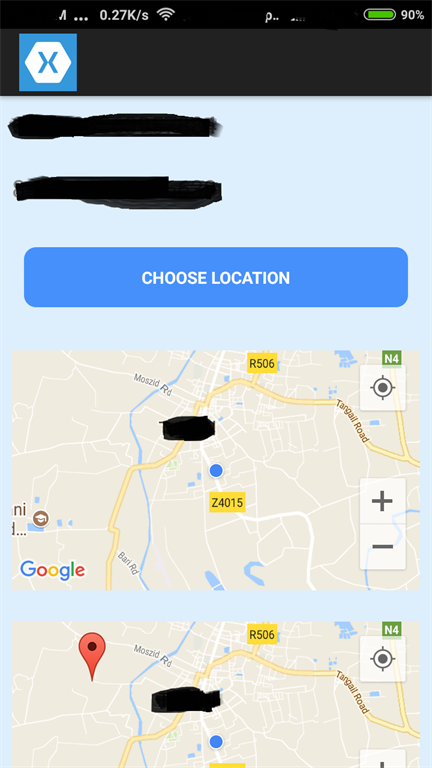 That’s it. If we run the project and click button to choose location we will get the output like this. And we can also tap the second custom map to find the coordinate.
