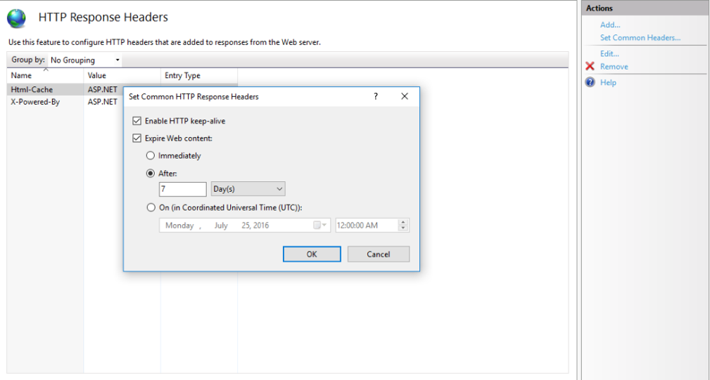 - UseMaxAge - Adds a Cache-Control: max-age=<XXX> header to the response, based on the value specified in the CacheControlMaxAge attribute.