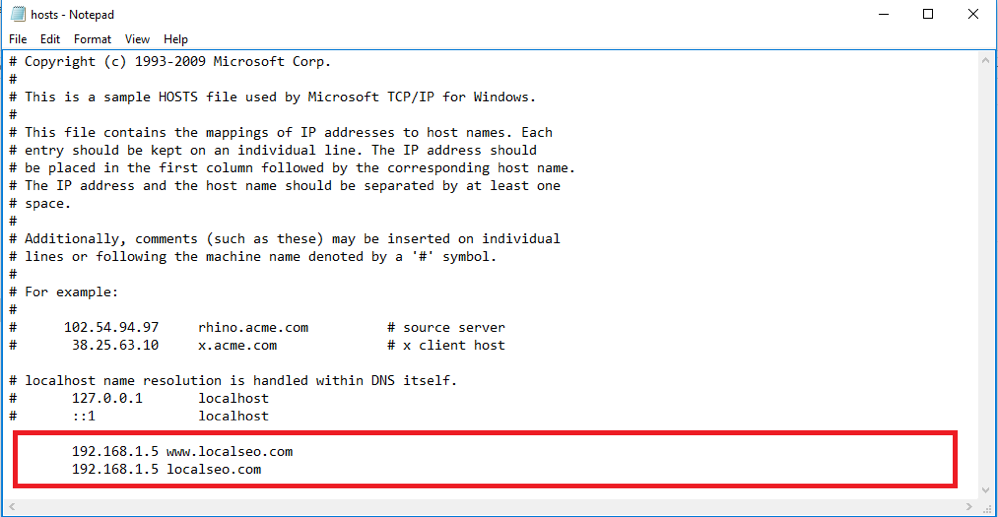 Now, open your browser. In address bar, write localseo.com and hit enter. Our local site will load.