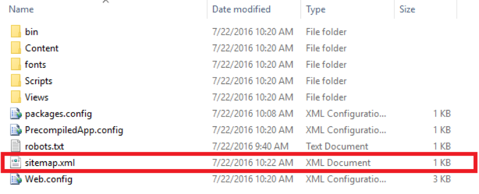 In IIS, I have placed the sitemap.xml file in the root folder.