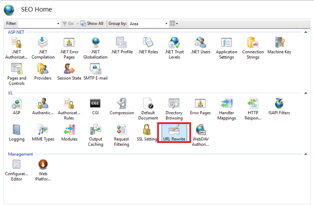 After installation, the URL Rewrite icon will appear. Double click on it.