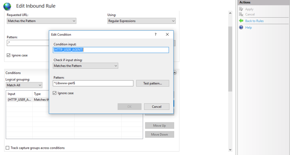 - <add input="{HTTP_USER_AGENT}" pattern="^Libwww-perl$" />