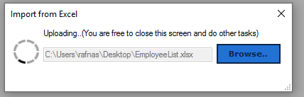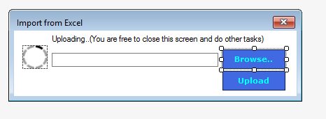 I have created win form Application and I added Form named as ImportFromExcel. I designed it, as given below (two buttons, One textbox, one label and one GIF image).