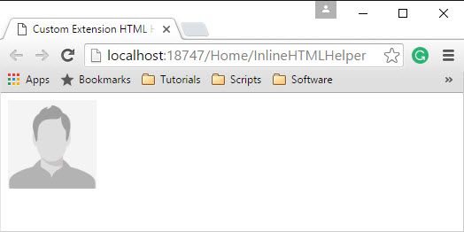 Now we can use Image HTML helper in all the views. The only thing we have to do is to add the reference at the top, so that we can call/invoke that custom helper method. If you want to use that custom helper method multiple times, you can add namespace of that custom helper class in the view’s web.config file.