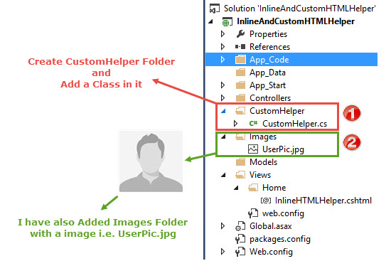 This is one of the simplest methods to create custom HTML helpers. We added a class (named as CustomHelper ) in CustomHelper folder.