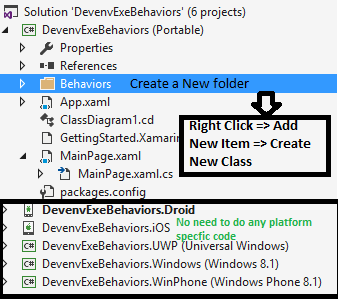 To create Xamarin.Forms Behaviors Application, follow the steps, given below-