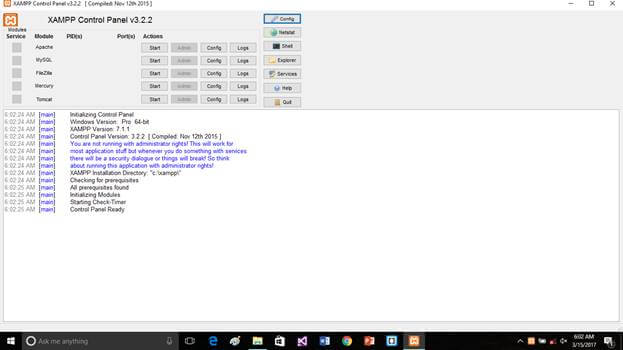 This is XAMPP Control panel. Start Apache and MySQL Server. Now, provide the permission for Apache and MySQL accesses the firewall.
