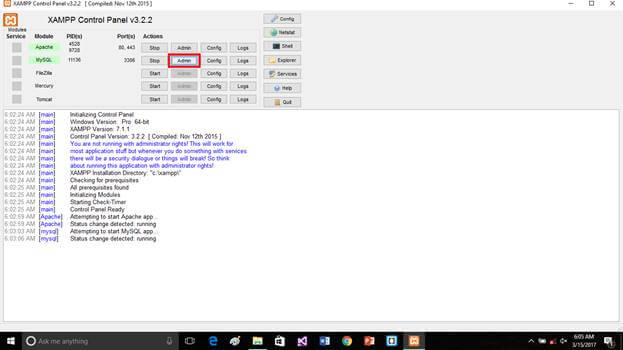 Open the XAMPP Control Panel, followed by clicking MySQL admin.