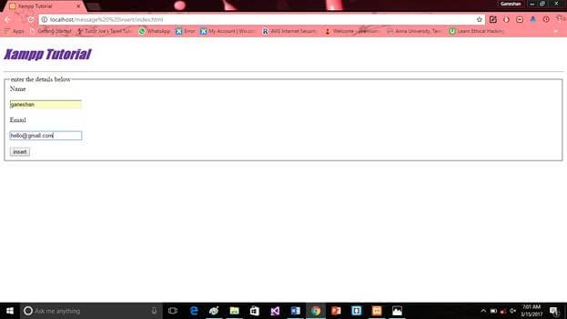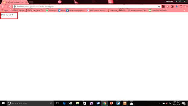 Here, our message is inserted in dynamic Webpage, which has been created and executed. I will continue my next article to give you an in-depth knowledge about XAMPP, FileZilla and GitHub lessons.