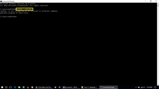 Open the command prompt and type the command given below to check whether Python is installed or not.