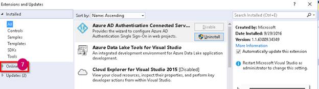 In your Visual Studio, click Tools - Extensions and Updates as shown below.