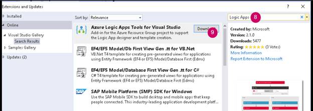 Search for Logic apps, as shown in the screenshot given below and click Download.