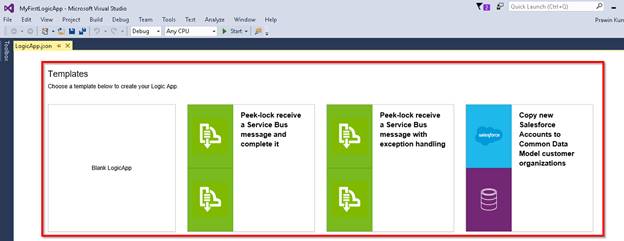 In the article Kickstart to Logic Apps in Azure, you might have learned that the Azure Management portal allows you to design the Logic app right in the Browser. In the similar way, Visual Studio also provides a Visual Designer for designing the Logic apps.