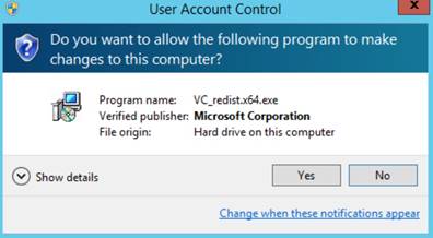 Installation of Visual C++ Redistributable Packages for Visual Studio 2013