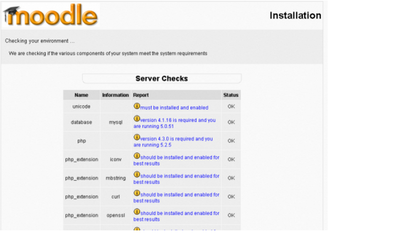 Step 6: To run moodle properly,server has some criterias which they follow before installation.Server check for some tests.