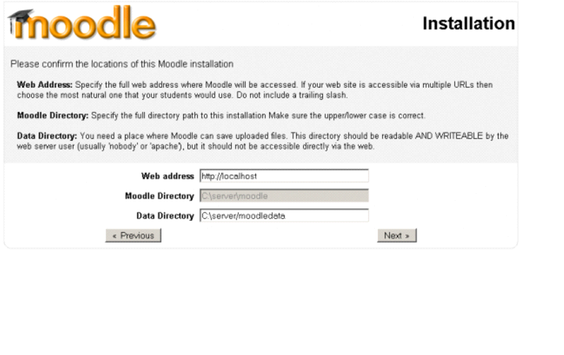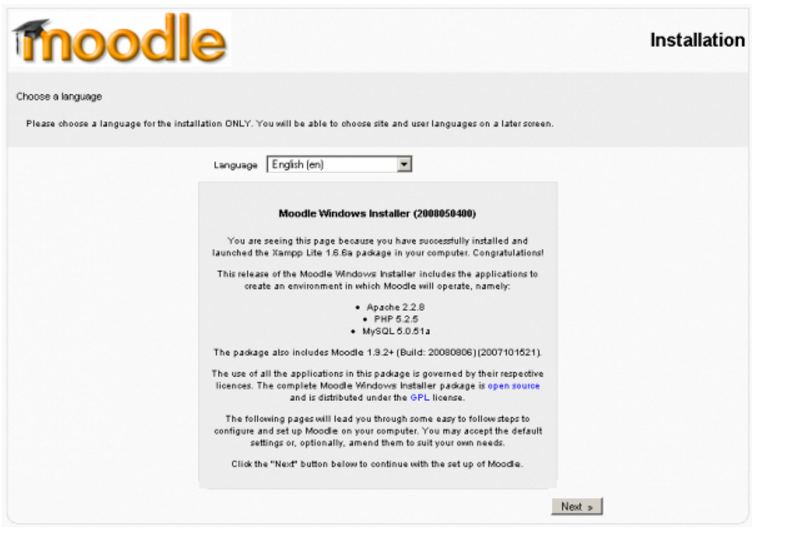 Now the process of installing Moodle is being completed. Type http://localhost in your web browser and the moodle will be opened.