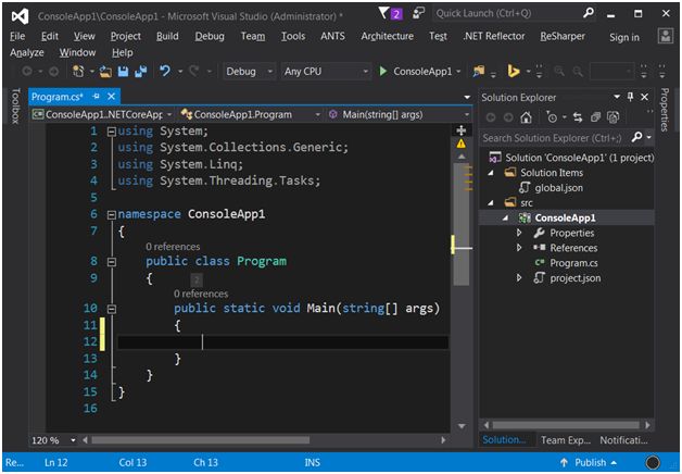 When you select a new .NET Core template and proceed with it, you will see a new project, and artifacts which are specifically designed to keep .NET Core’s cross-platform vision in mind.