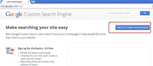 Step 2 - When the page is opened, click on the blue tab at top right corner saying "Sign in to Custom Search Engine".