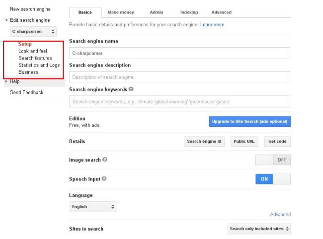 Clicking setup menu will provide you provisions to edit your Search Engine.