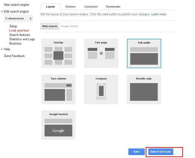Step 8 - You can change the look & feel of your Search Engine, using Look and feel menu.