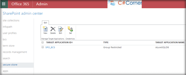 - Secure Store target Application- Secure store in SharePoint will hold the credentials which will be used by SharePoint to connect to Azure SQL DB. The detailed steps to set up the target application in secure store can be found here.