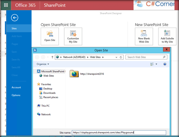 Click on Open Site to connect to our SharePoint Online site. Specify SharePoint Online URL and hit enter.