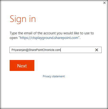 It will ask for authentication to connect to SharePoint Online. Specify the username, which is ideally the Email Id associated with the user account and click Next.