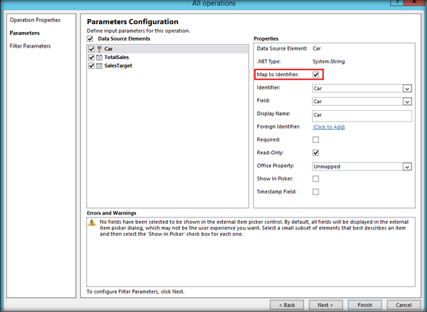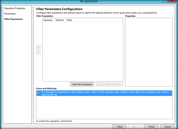 If we want to get only a subset of the data, we can specify filter parameters, else complete the creation of the content type by clicking Finish.