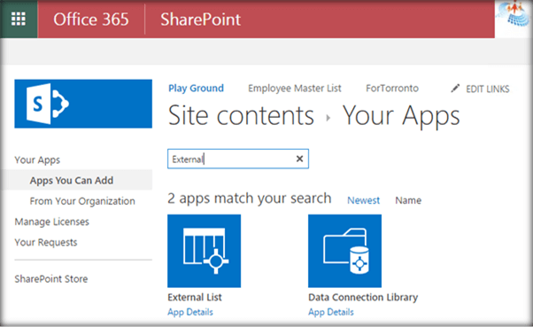 We will now create an external list, which is based on the content type that connects to Azure SQL DB.
