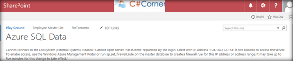 Clicking on Create will create the external list, which connects to Azure SQL DB. However, we may get the error given below, if Firewall rule for the IP in the error message is not present for Azure SQL DB Server.