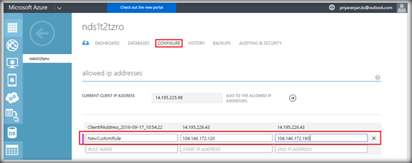 We will have to add IP range in the Azure SQL DB Server dashboard.