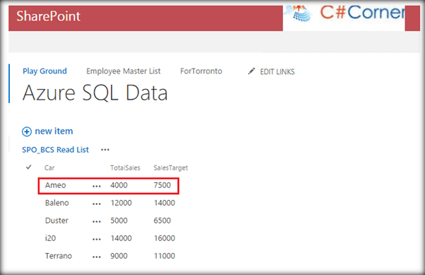 Now, if we head over to the external list, we can see the data that are pulled from Azure SQL DB in SharePoint Online external list.