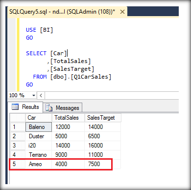 Thus, we have established the connection and we can see the tables within the “BI” database.