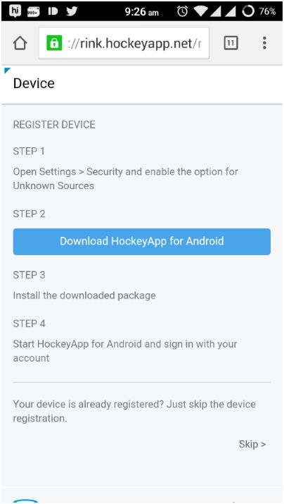 - Follow the steps shown in above image and download the Hockey app mobile application. After downloading the application, we need to sign in using Hockey app account credentials.