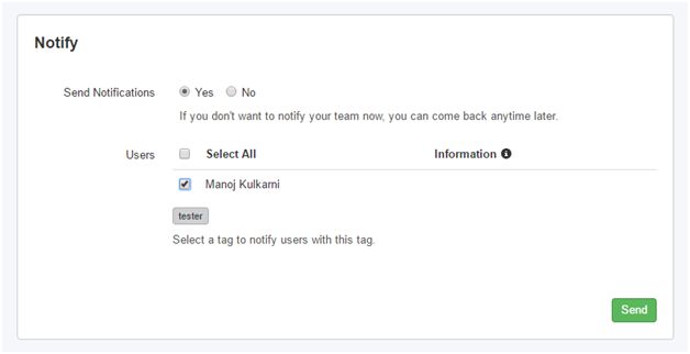 - Notify page allows us to notify our tester users regarding the new version of our application. Click on the Send button to proceed further. When we click on Send button, tester user will get an email regarding the release of our application including the link to download and install the app.