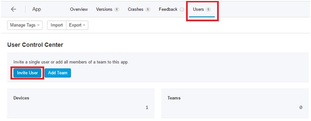 - To invite other members for testing our application, go back to our Hockey app website and select Users link and click on Invite User Button and as shown below (F:25)