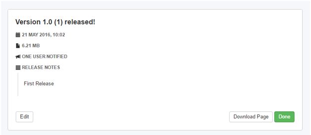 - After clicking on done button, we will be redirected to an overview screen of our app in Hockey app dashboard.