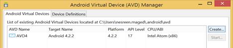 - You must have at least one AVD (Android Virtual Device) configured on your development machine.