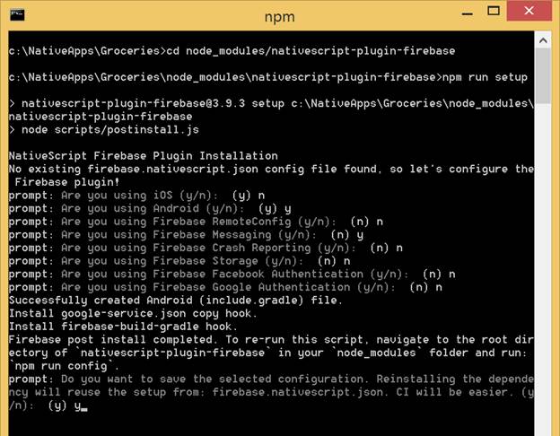 - Browse node_modules/nativescript-plugin-firebase to run the setup of Firebase on our app.