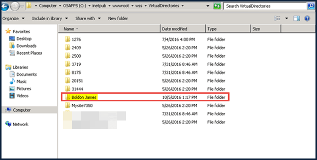 - Physical Path Path of the folder you created in Step 2 of this section. In this case, it is C:\inetpub\wwwroot\wss\VirtualDirectories\Boldon James