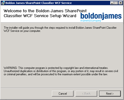 - Installation of appropriate Boldon James Classifier Service (2010/2013).