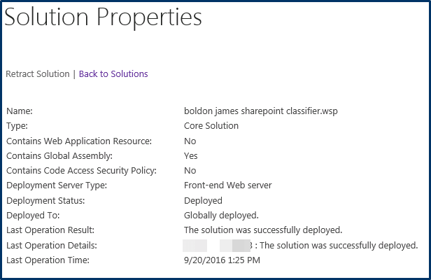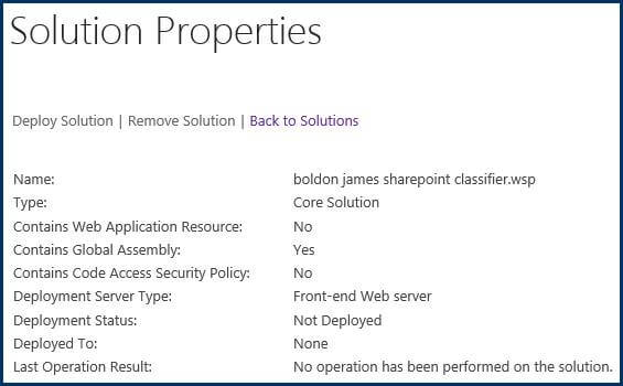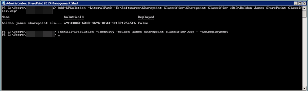 Install-SPSolution –Identity “boldon james sharepoint classifier.wsp” –GACDeployment